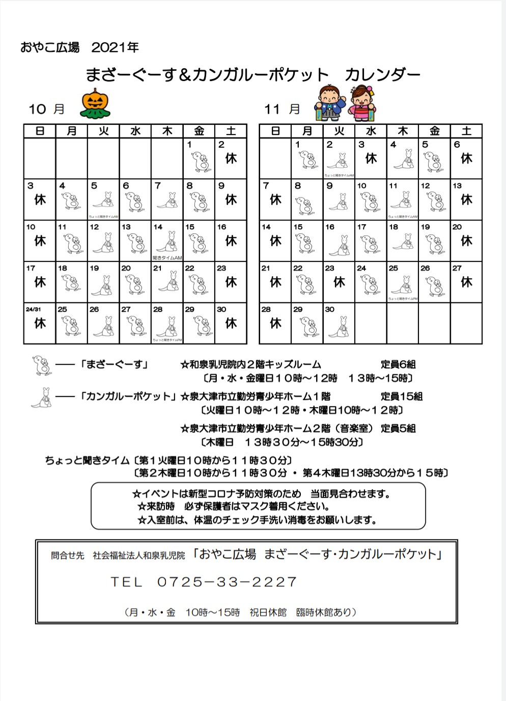カンガルーポケットの9月のカレンダーで9月20日(月)に開催